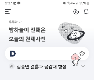다음 앱에서도 큐알코드를 스캔할 수 있습니다. 다음 앱을 실행한 후, 검색창 옆에 있는 꽃 모양 아이콘을 클릭합니다. 바로 아래에 '코드 검색'이라는 항목이 뜨면 누릅니다. 카메라가 실행되면 큐알코드를 화면에 맞추고, 인식이 완료되면 관련된 정보가 나타납니다.