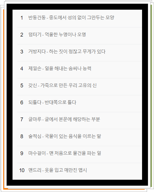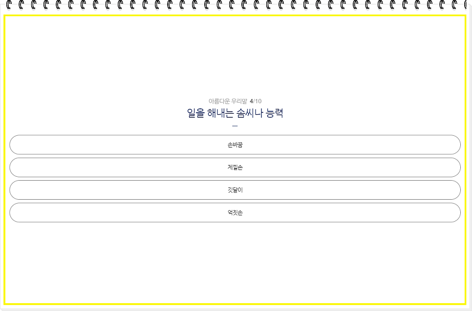 우리의 고유한 언어인 순우리말, 그 뜻을 정확히 알고 사용하는 사람은 얼마나 될까요? 지금부터 순우리말 퀴즈를 통해 자신이 얼마나 한국어를 잘 알고 있는지 테스트할 기회가 찾아왔습니다. 여러분이 알고 있는 만큼, 이 퀴즈가 쉬울 수도, 도전적일 수도 있겠죠? 그럼, 자, 이제 한국어 고수의 자리를 차지할 준비가 되셨나요? 함께 도전해 보세요!