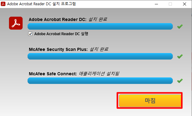 설치가 완료되고 아래 마침 버튼을 클릭해서 설치를 완료하시기 바랍니다.