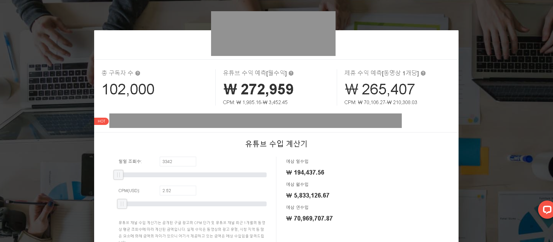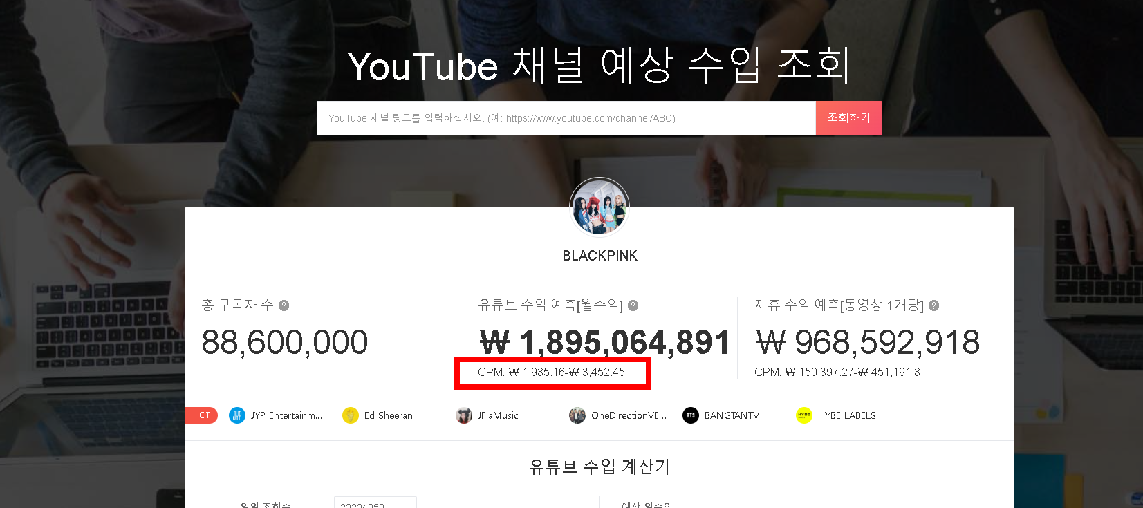 이렇게 유튜브 수익계산기의 계산식과 10만 구독자의 수익 오해, 그리고 사이트 소개까지 알려드렸습니다. 조금 복잡해 보이지만, 위의 수입 계산은 어느 정도 오차는 분명히 있습니다. 왜냐하면 CPM 값이 유튜버마다 다르지만, 그 값이 공개되는 건 본인들만 알기 때문입니다. 하지만 그 cpm의 최솟값과 최댓값이 알려져 있는 만큼, 이 사이트에서 얻은 수입계산에서 엄청나게 큰 차이가 나지는 않을 것입니다. 이제 그러면 우리가 좋아하는 유튜버의 예상 수익을 알아보러 가볼까요?