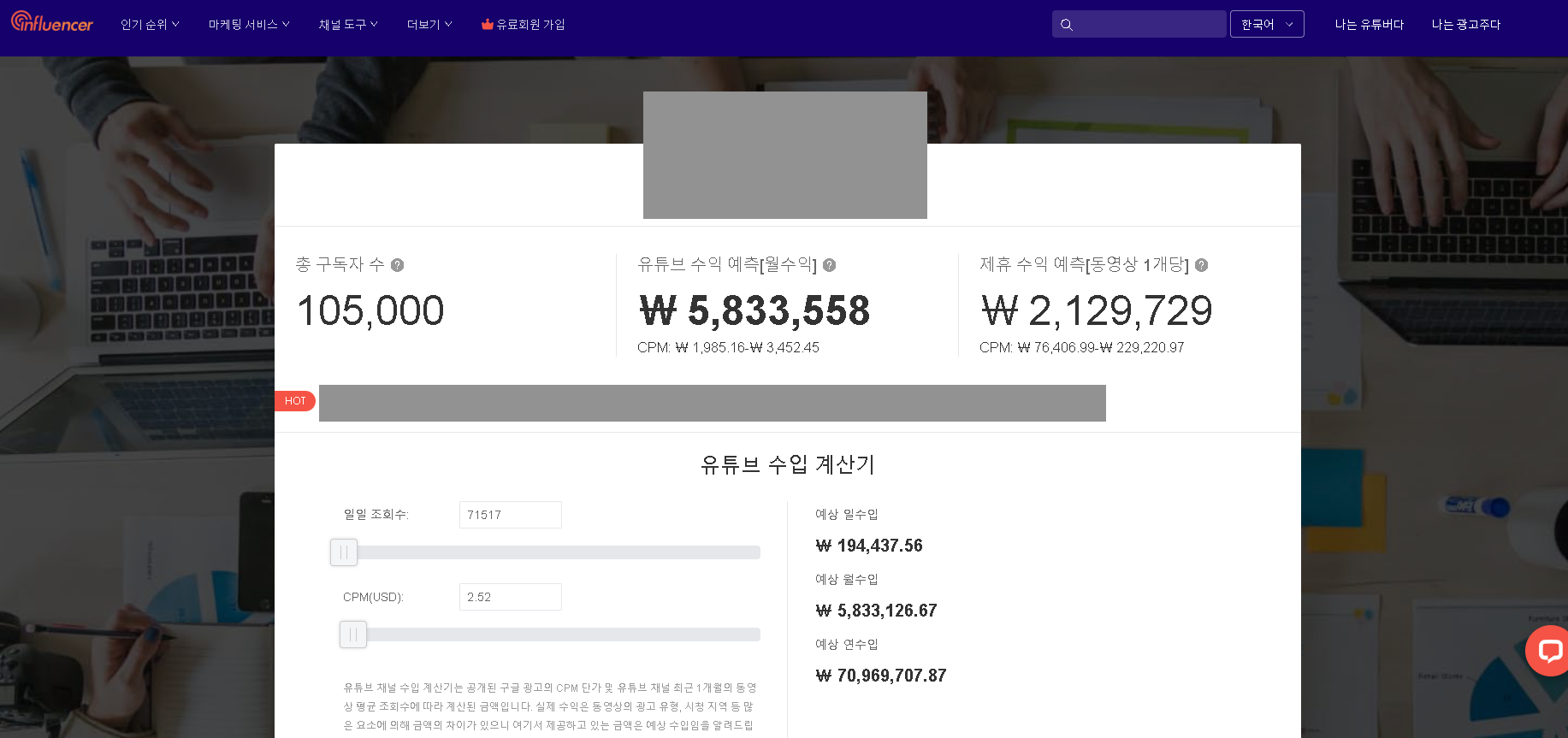 유튜브 인플루언서는 얼마를 버는지 궁금하신가요? 최고의 유튜브 툴이 유튜버의 예상 수익을 쉽게 알려드립니다.