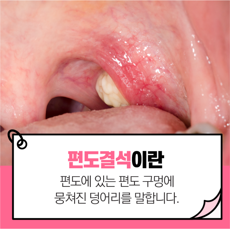 편도결석은 편도의 크립트(구멍)에 음식물 찌꺼기, 세균, 죽은 세포 등이 쌓여서 형성된 작은 덩어리입니다. 이 결석은 보통 흰색이나 노란색을 띠며, 크기는 다양합니다. 편도결석이 생기면 목이 아프거나 불편한 느낌이 들 수 있습니다.