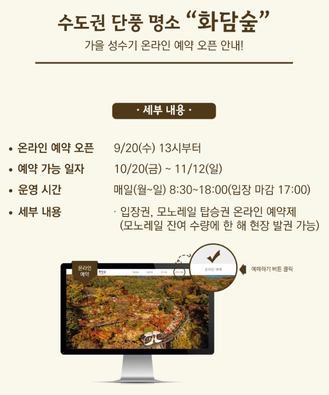 온라인 예약 가능 일자 : 10월 20일 (금요일) ~ 11월 12일 (일요일)