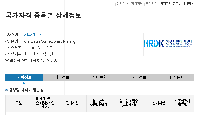 2024 제과기능사 필기 시험 일정