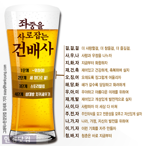 첫 번째 건배사는 "사랑을 나누자"입니다. 이 건배사는 서로의 마음을 나누고, 따뜻한 정을 느끼게 해 줍니다. 특히 연말연시에는 가족, 친구, 동료들과의 사랑을 다시 한번 되새기는 좋은 기회입니다.